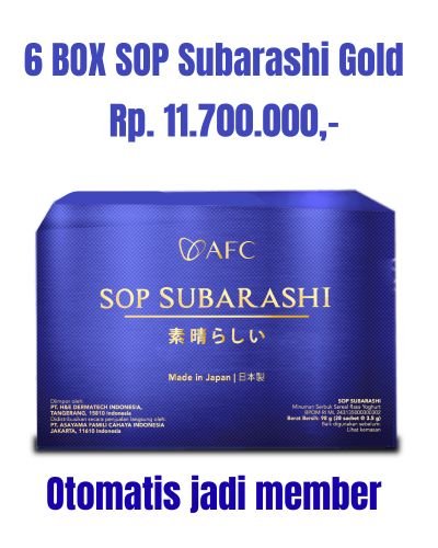Sop Subarashi diproduksi dan dikemas oleh AFC Life science Jepang dan diimport oleh AFC Life cahaya Indonesia.